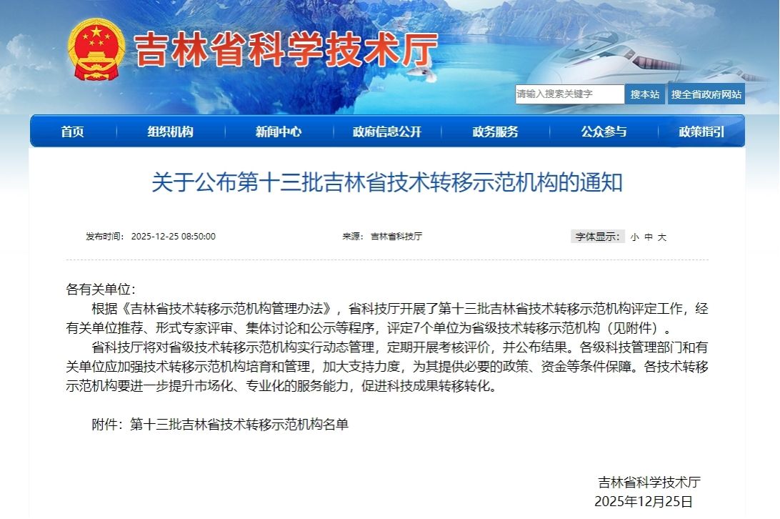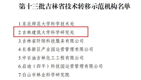 近日,吉林省科技厅公布第十三批吉林省技术转移示范机构认定结果,共7个单位为省级技术转移示范机构。学校科学研究处获批为第十三批吉林省技术转移示范机构。